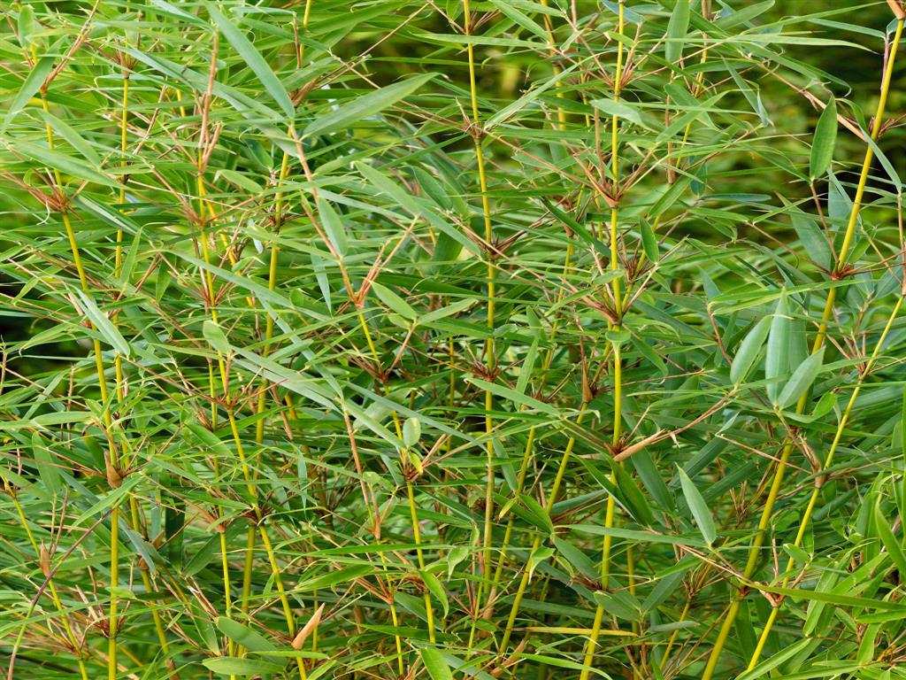 De jonge scheuten verschijnen in het voorjaar met opvallende lichte schedebladeren, wat de plant extra sierwaarde geeft. Na verloop van tijd vormen zich sterke bamboestengels die een dichte, frisse groene wand creëren. Deze bamboe blijft het hele jaar door groen en zorgt dus ook in de winter voor structuur en privacy in de tuin.