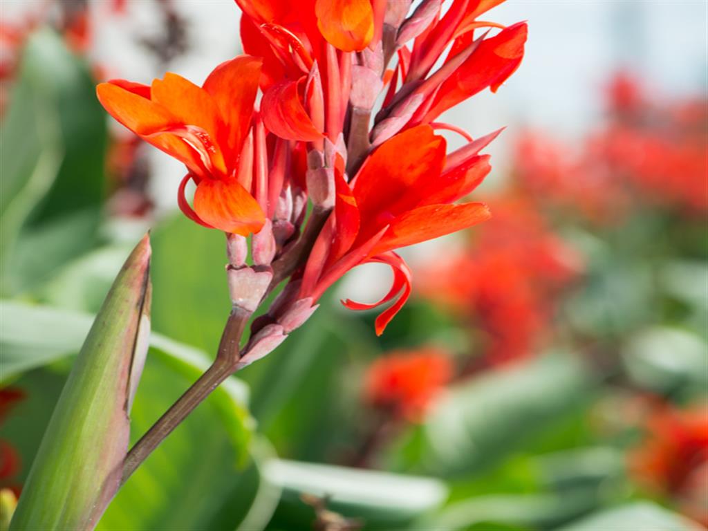 De Canna indica Hybride ‘Robert Kemp’ is een indrukwekkende tropische plant met robuuste, groene bladeren en levendige dieprode bloemen. Deze cultivar bereikt een gemiddelde hoogte van 175–200 cm en vormt een opvallend architectonisch element in borders, patio’s en grote potten. De lange bloeiperiode van zomer tot herfst zorgt voor een kleurrijk en dynamisch accent in elke tuin.